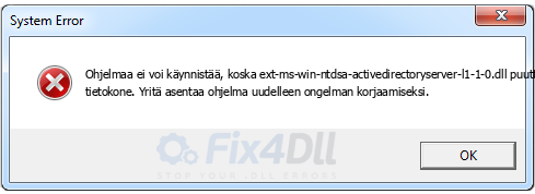 ext-ms-win-ntdsa-activedirectoryserver-l1-1-0.dll puuttuu