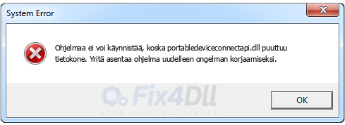 portabledeviceconnectapi.dll puuttuu